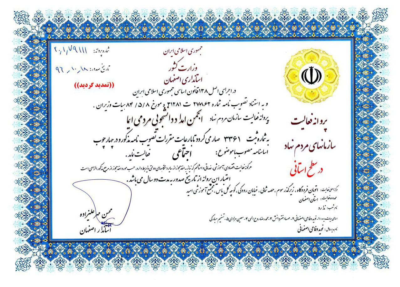 ایما انجمنی مردم نهاد است که در سال 1388 با دریافت مجوز رسمی از استانداری اصفهان و با شماره ثبت 3361 با عنوان «انجمن امداد دانشجویی مردمی ایما» فعالیت خود را آغاز کرده است. انجمن ایما سازمانی مردمنهاد است که کاملاً مستقل و بدون وابستگیهای حزبی و سیاسی فعالیت میکند؛ چراکه تنها هدف آن توقف چرخه فقر و محرومیت و کاهش آسیبهای ناشی از آن از طریق توانمندسازی مردم مناطق محروم است.